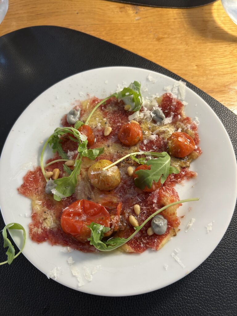 Il y a aussi un restaurant gastronomique à Montagut, le Eixida Espai Cultural i Gastronòmic. Au vu du prix (25€ en 2025), la qualité du repas est juste incroyable. On a eu un apéritif, trois entrées, un plat principal, une mignardise, et un dessert ! Tout était succulent.